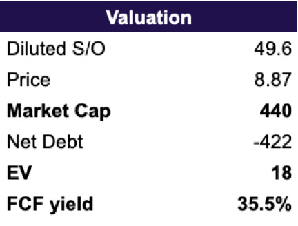 Trading at net cash value, 35% FCF yield